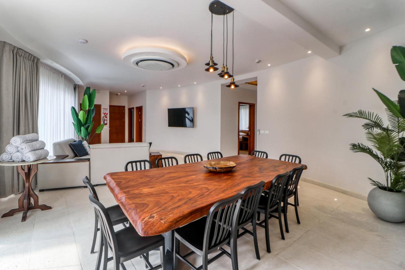 The apartment is fitted with 6 bedrooms, 6 bathrooms, bed linen, towels, a TV with satellite channels, a dining area, a fully equipped kitchen, and a terrace with mountain views. Guests can enjoy a meal on an outdoor dining area while overlooking the pool views. For added privacy, the accommodation features a private entrance.